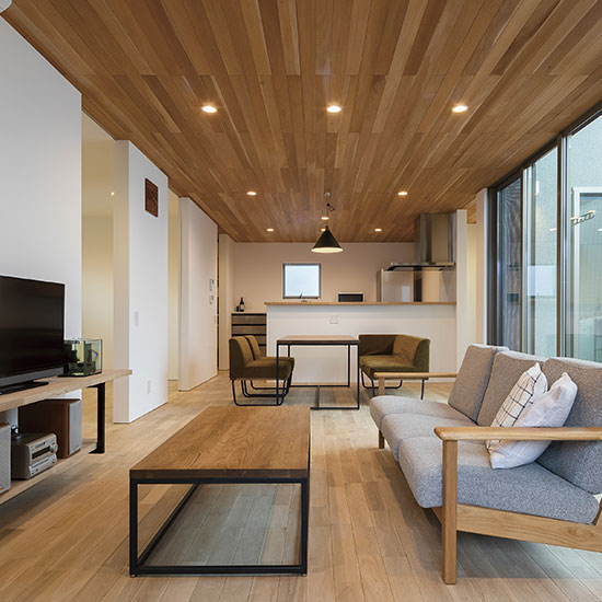 カフェのようなくつろぎを自宅でも感じられるプラン。友人たちを招いての食事会など、様々なシーンが生まれるスタイルです。